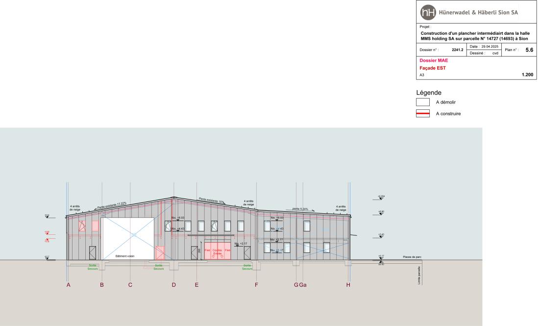 À louer dès début 2027, une surface commerciale située dans un bâtiment industriel entièrement rénové en 2021, idéalement implanté dans la zone industrielle ouest de Sion, à seulement 100 mètres de l’accès autoroutier, à proximité immédiate de l’aéroport et des transports en communs.