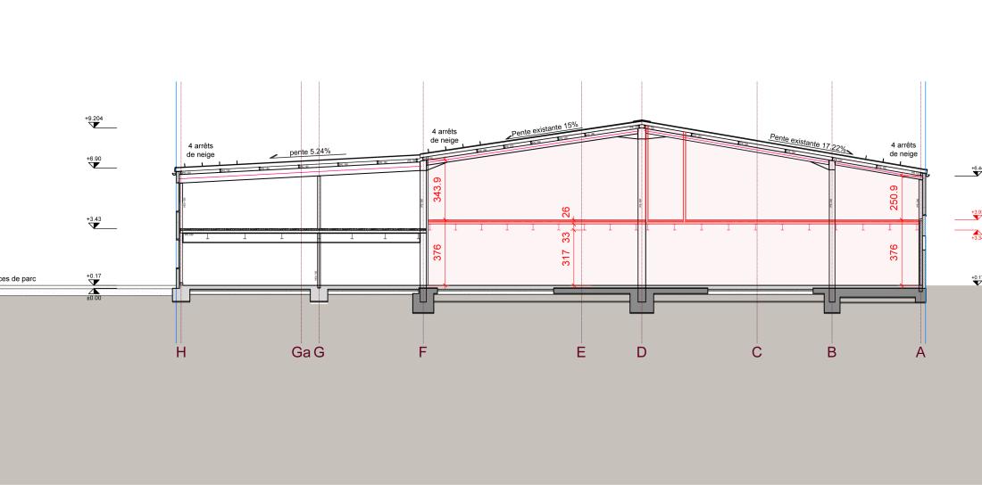 • Distance sous-toit : 3m60 avec lanterneaux qui s’ouvrent.