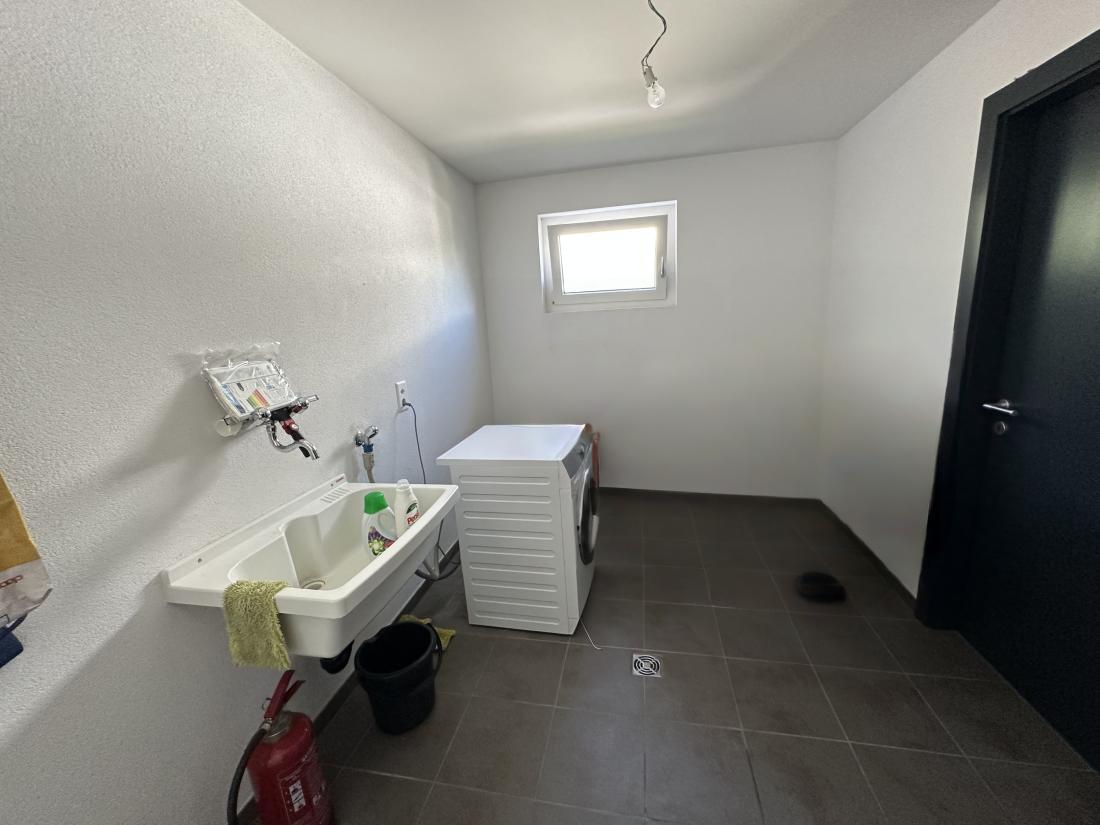 • Hall d’entrée, cuisine agencée ouverte sur le séjour, accès à la terrasse, jardin, piscine extérieure, bureau, réduit, buanderie avec chaufferie, garage-box double, quatre places de parc extérieures ainsi qu’un bureau séparé.