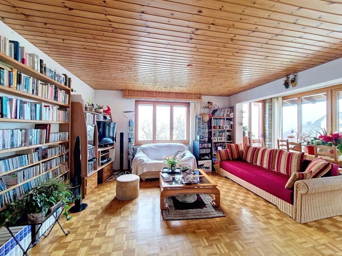Cette très grande villa d’architecte, partiellement rénovée, se situe sur une parcelle de 664 m2 à la route du Champ de la Grange 36 à Saxonne, sur la commune d’Ayent.