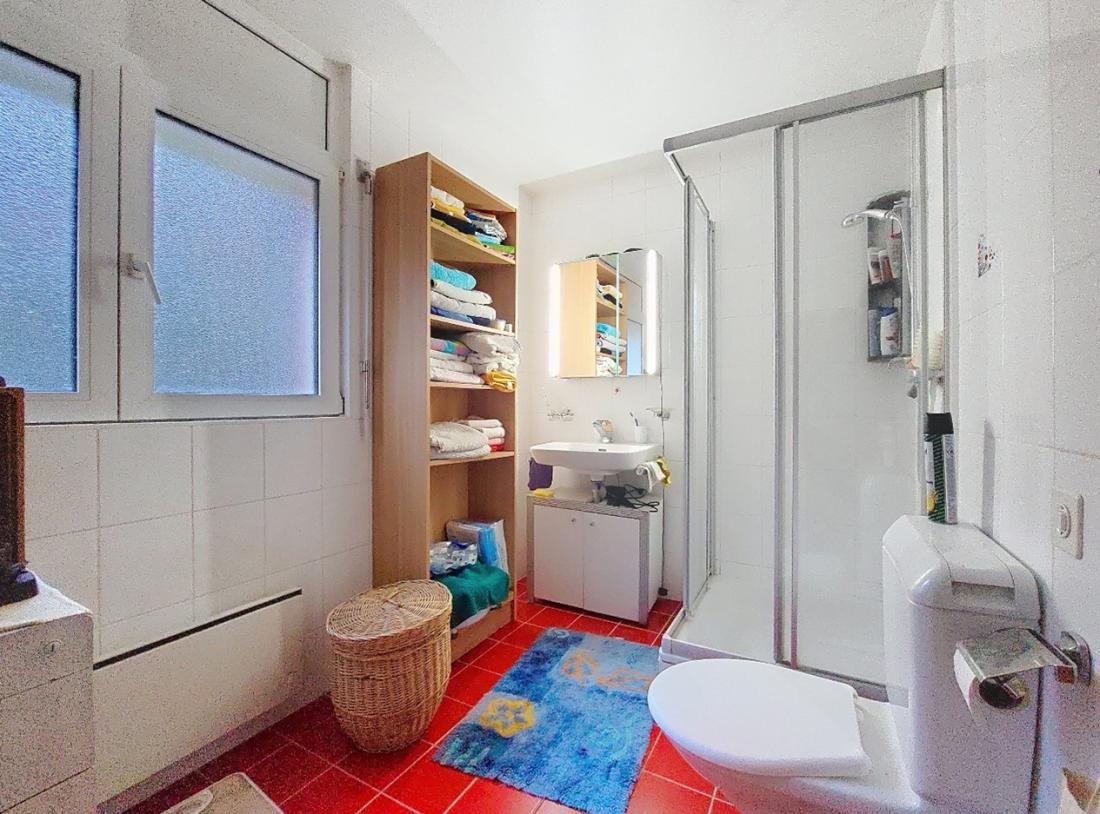 Orienté nord-sud-ouest, le logement bénéficie d’une belle luminosité naturelle grâce à ses nombreuses fenêtres. La distribution des pièces est optimale, offrant une excellente séparation des espaces. L’espace nuit comprend deux chambres confortables ainsi qu’une salle d’eau équipée d’une douche et d’une baignoire.