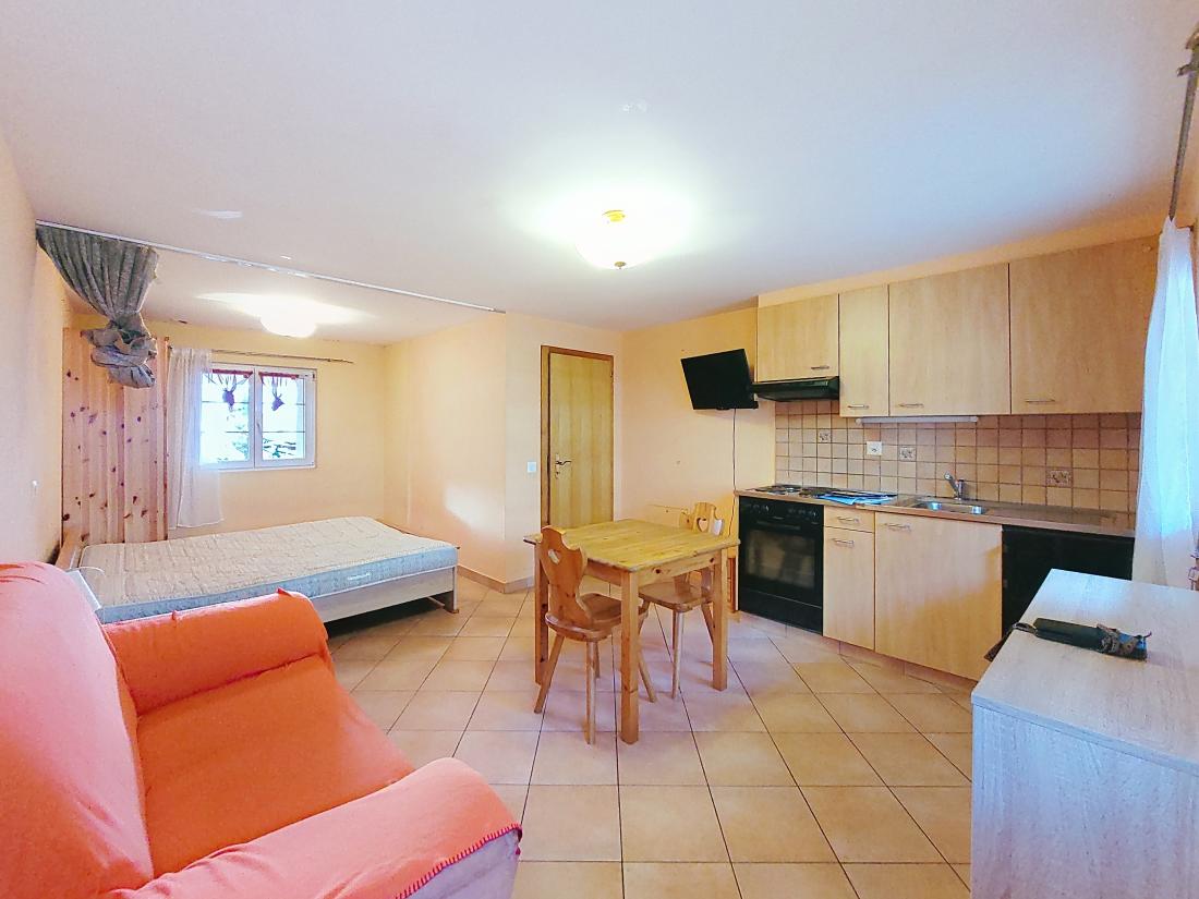 Charmant studio meublé situé au rez-de-chaussée d’une petite résidence, à l’entrée est du village de Saxon. Idéalement placé, il offre un cadre pratique et agréable.