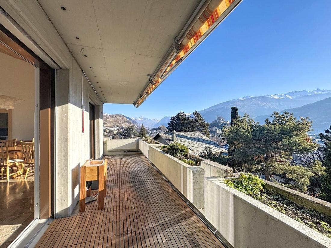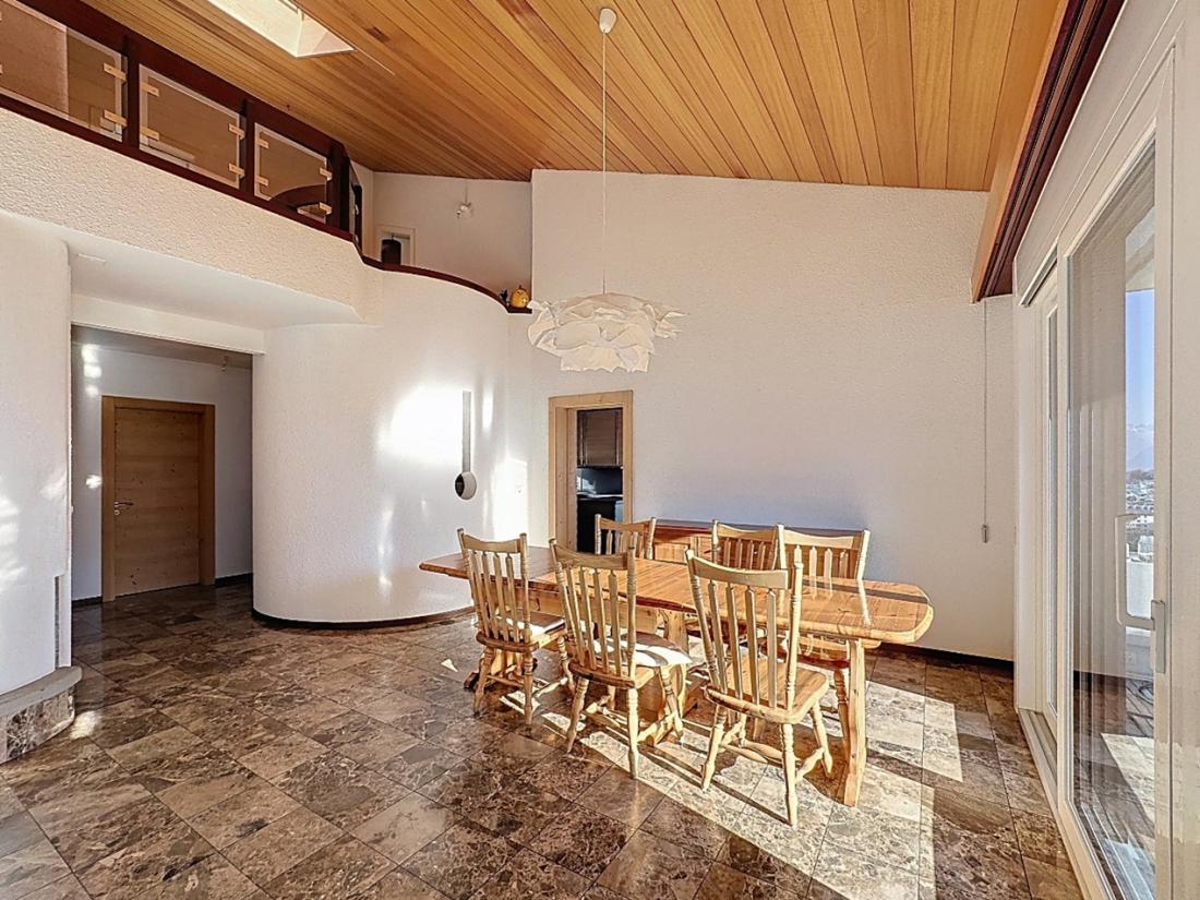 Ce superbe duplex en attique de 239 m2 et de 7.5 pièces se situe au 2ième étage de l’immeuble « Gravelone 58 », à la route de Gravelone 58, dans le quartier résidentiel très prisé de Gravelone à Sion. Cet objet d’exception se trouve au sein d’une petite PPE de seulement 8 appartements, répartis sur deux entrées. L’immeuble, construit en 1984, bénéficie d’une magnifique terrasse offrant une vue imprenable sur Valère et Tourbillon ainsi que sur les Alpes valaisannes.