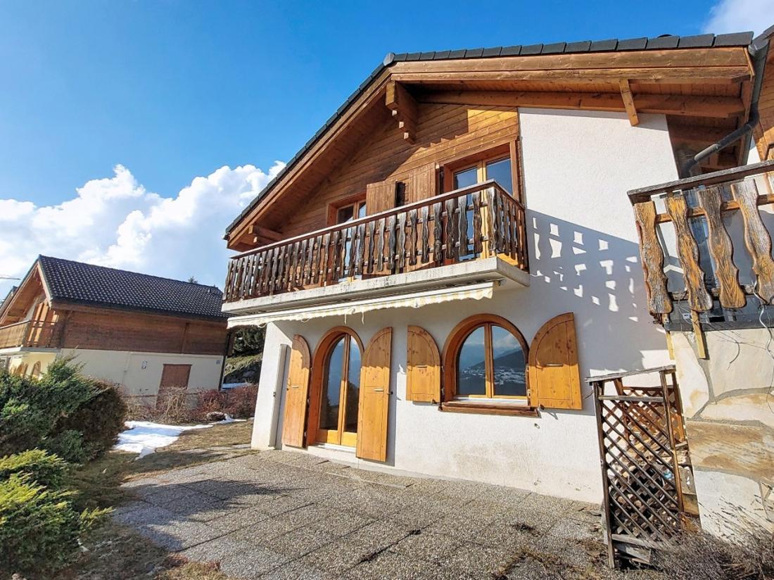 Construit en 2002, ce charmant chalet mitoyen de 4.5 pièces se situe sur une parcelle de 358 m2 à la route du Sergnou 179a à Pra Riond, sur la Commune de Lens, à une altitude d’environ 1'245 m.