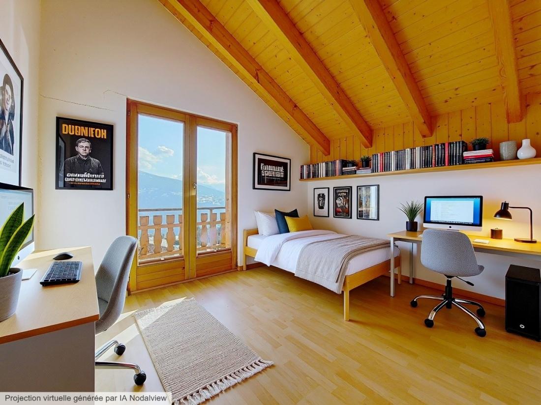 La parcelle dispose d’un jardin privatif agrémenté d’un plat de 75 m2, idéal pour profiter pleinement des beaux jours face à un panorama complètement dégagé. Les amoureux de nature apprécieront la proximité immédiate de nombreux itinéraires pédestres, notamment le Grand Bisse de Lens, offrant de magnifiques balades à pied ou à vélo. En voiture, le chalet se situe à 5 minutes du centre du village de Lens, de ses commerces et services, à 10 minutes du centre de Crans-Montana et à moins de 25 minutes de l’entrée d’autoroute de Sierre.